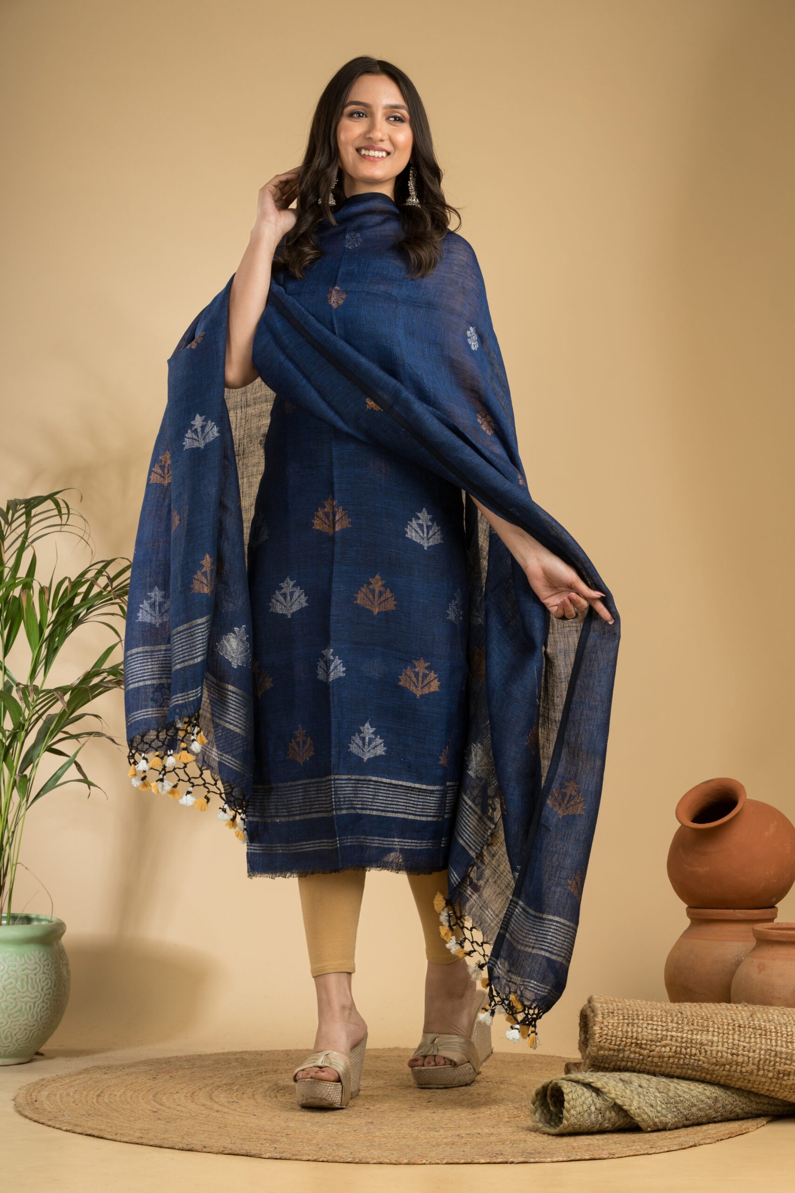 Discover the perfect blend of tradition and sophistication with our Pure Linen Unstitched Jamdani Suit – an elegant 2-piece set designed to elevate your ethnic wardrobe. The intricate handwoven Jamdani patterns, crafted with care, reflect the rich heritage of traditional artistry.