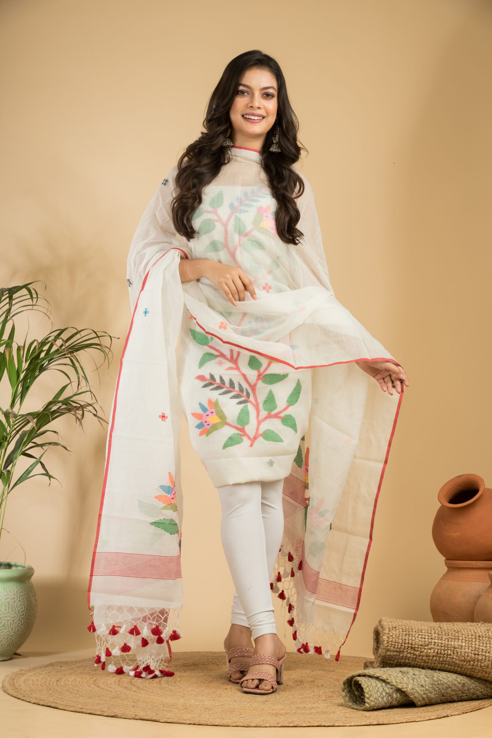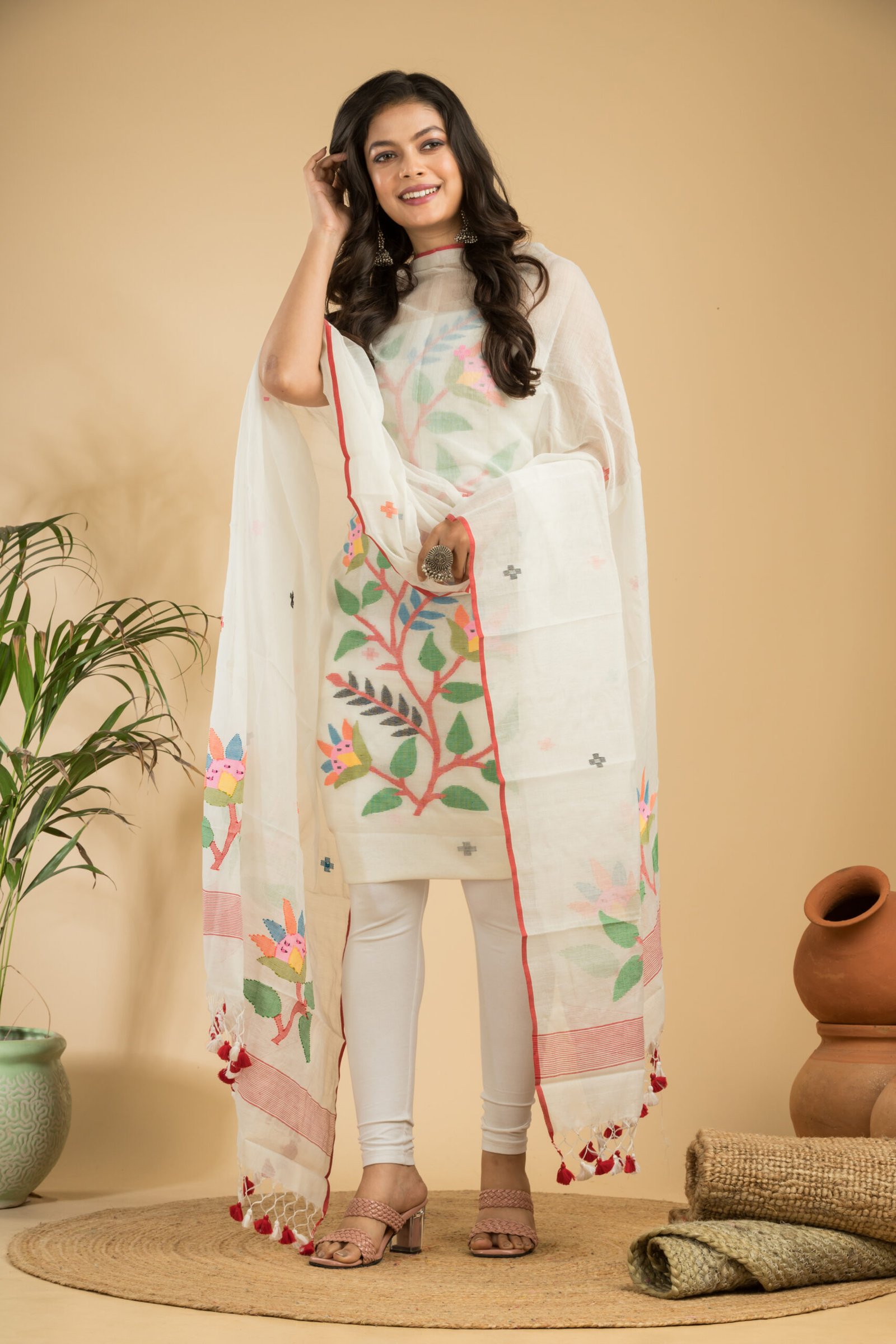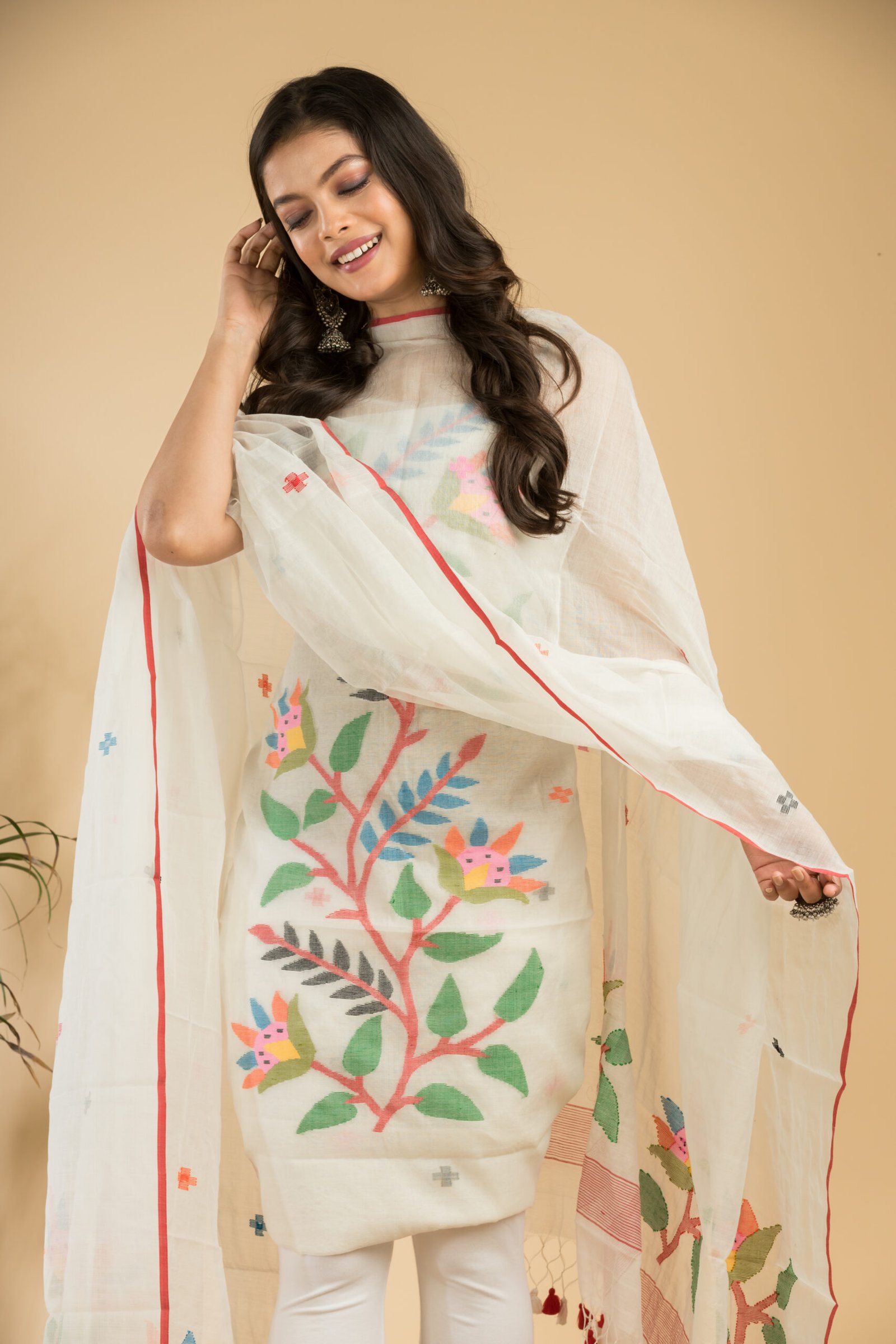 Discover the undeniable charm of our Muslin Jamdani Suit – an unstitched 2-piece set that redefines sophistication. Handwoven with precision, this ensemble highlights intricate patterns and a luxurious finish, perfect for any occasion.