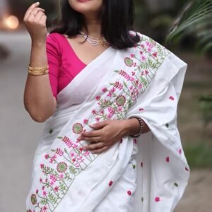 Showcasing intricate embroidery work, this saree is designed to offer a hint of traditional charm that seamlessly complements modern aesthetics. Its stunning detailing enhances your natural grace, making it suitable for festive occasions or casual gatherings.