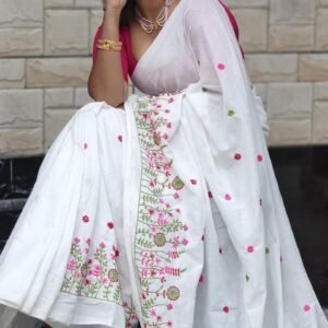 Experience the perfect blend of elegance and comfort with our Pure Cotton Embroidered Saree. Made from premium quality cotton, this saree ensures a breezy and lightweight feel, making it an excellent choice for all-day wear.