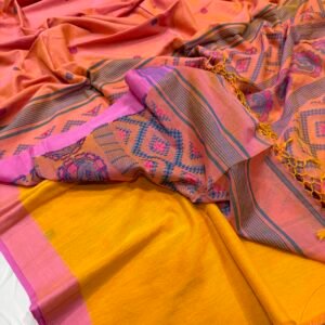 The meticulous handwoven patterns in this saree reflect the beauty of traditional Jamdani designs. With each thread telling a story, this is more than a saree – it’s a testament to heritage and art. Pair it with statement jewelry or keep it minimal for an effortlessly chic look.