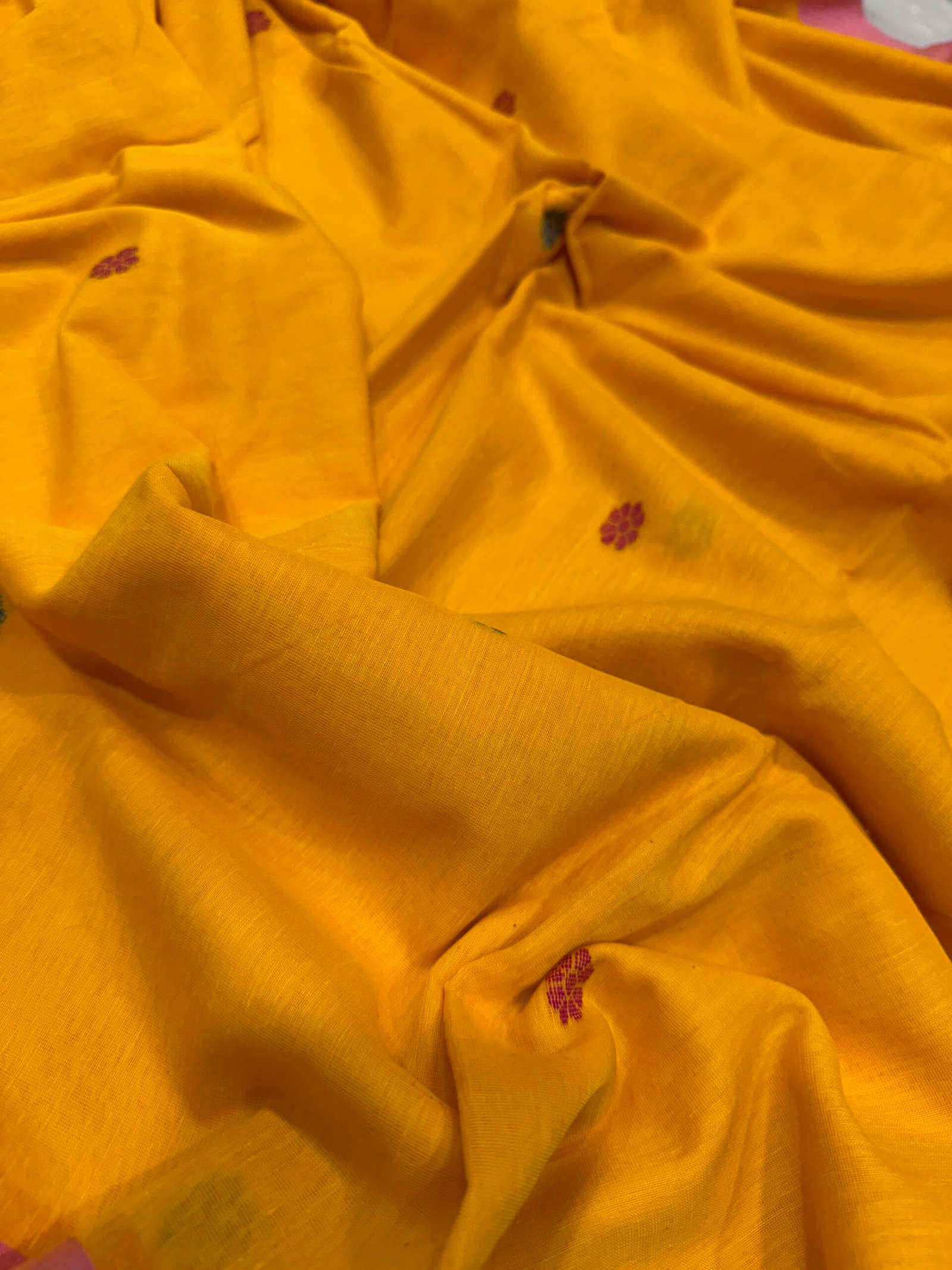 Discover the timeless beauty of our Handwoven Cotton Jamdani Saree with Blouse Piece. Each saree is a masterpiece, intricately woven by skilled artisans to reflect the cultural heritage and traditional elegance of Jamdani weaving techniques.