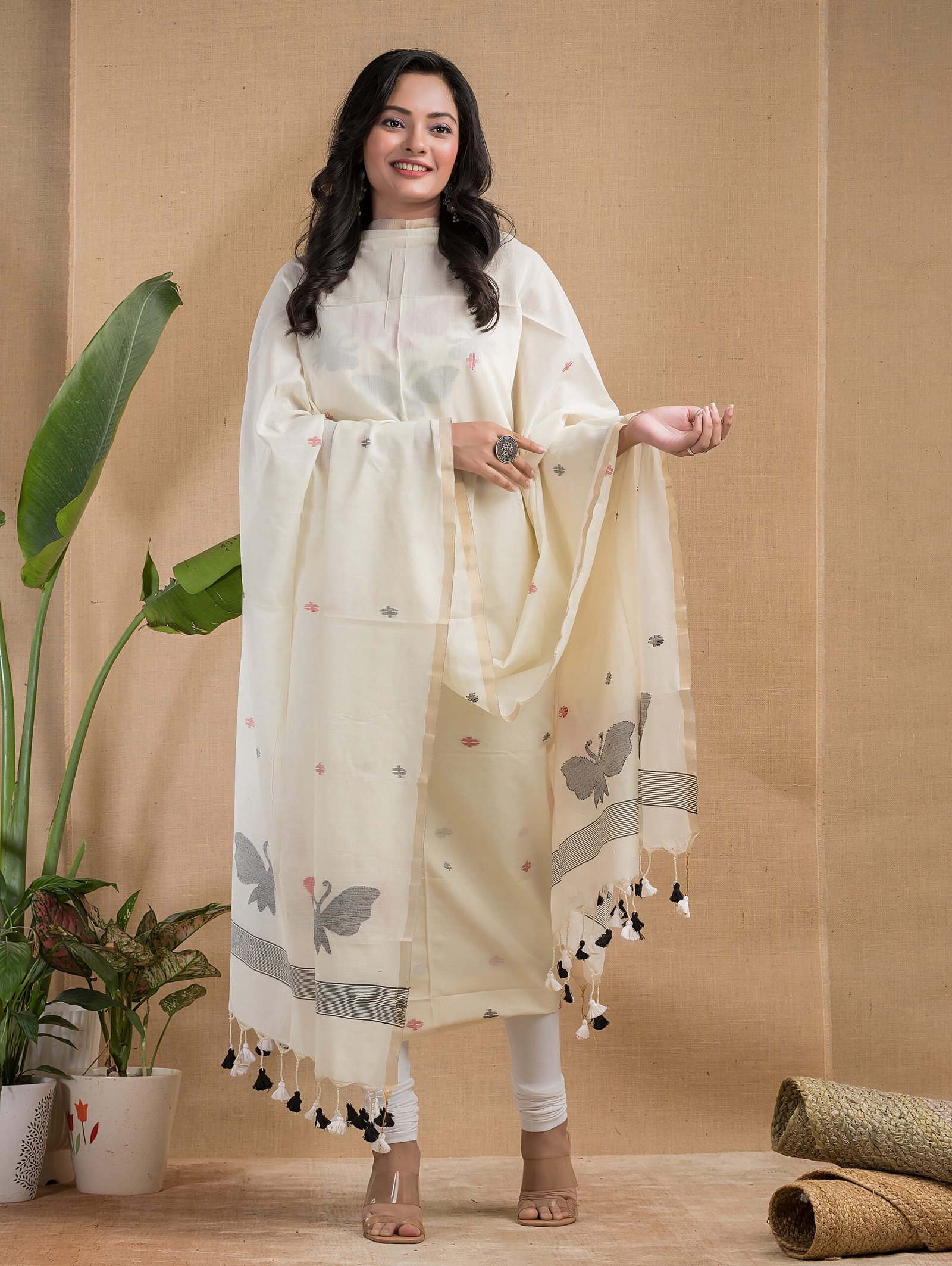 Off white | Pure cotton Jamdani Suit – Elegant 2-Piece Set