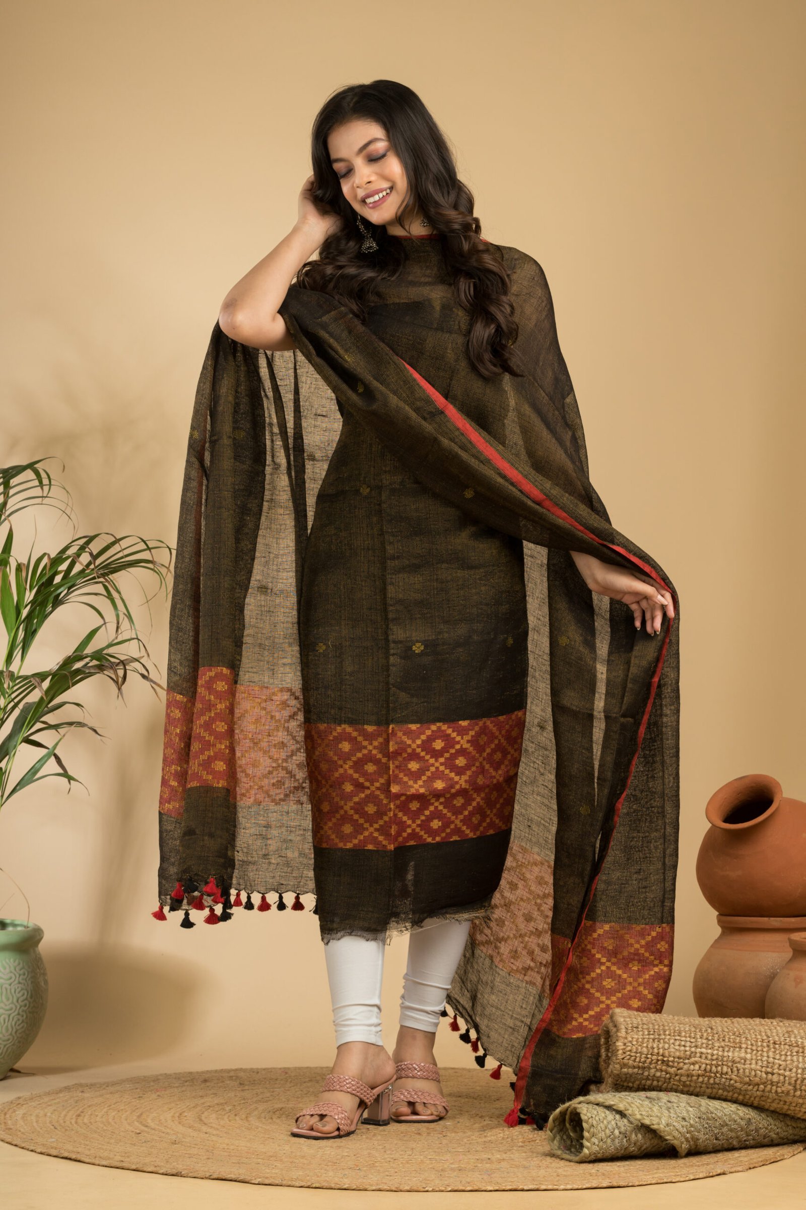 Discover the charm of traditional craftsmanship blended with contemporary allure in our Tissue Linen Unstitched Jamdani Suit. This exquisite 2-piece set captures the essence of sophistication, providing you with an elegant canvas to create your own personalized masterpiece. Perfect for festive occasions or formal events, its timeless design ensures you stand apart with grace.